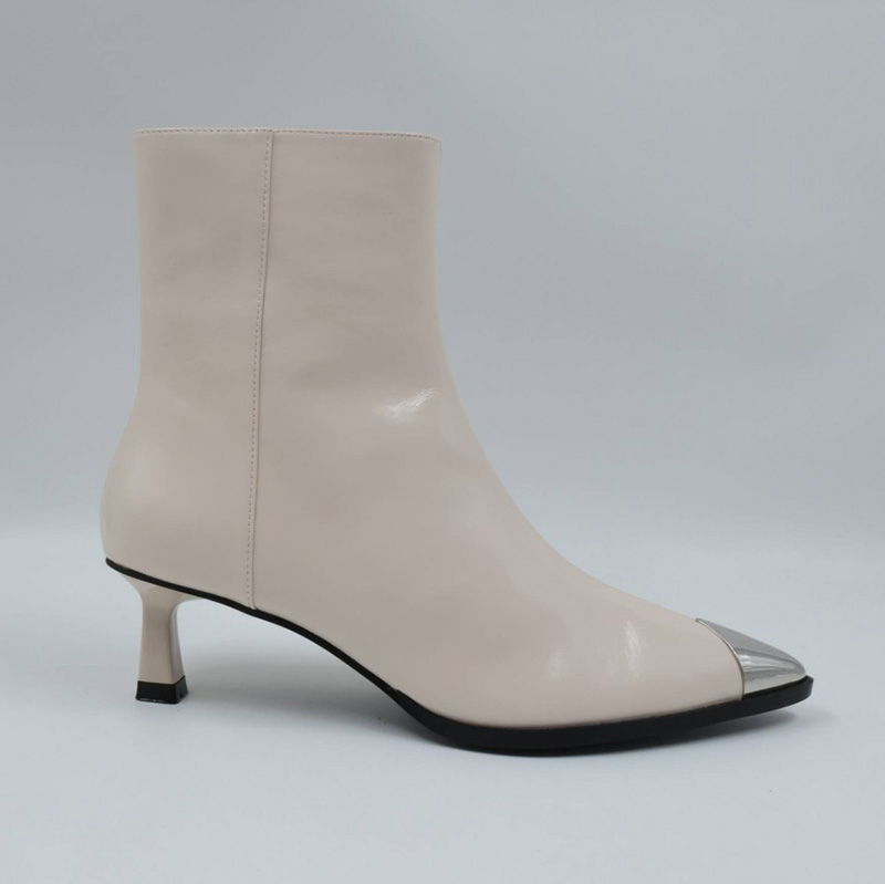 Crafted with a cushioned insole and a supportive heel, our Metal Toe Cap Heeled Ankle Boots provide exceptional comfort without compromising on style. The pointed toe design not only elongates your legs but also adds a touch of chicness to your ensemble. With a variety of colors available, you can choose the perfect pair to match your personal style.